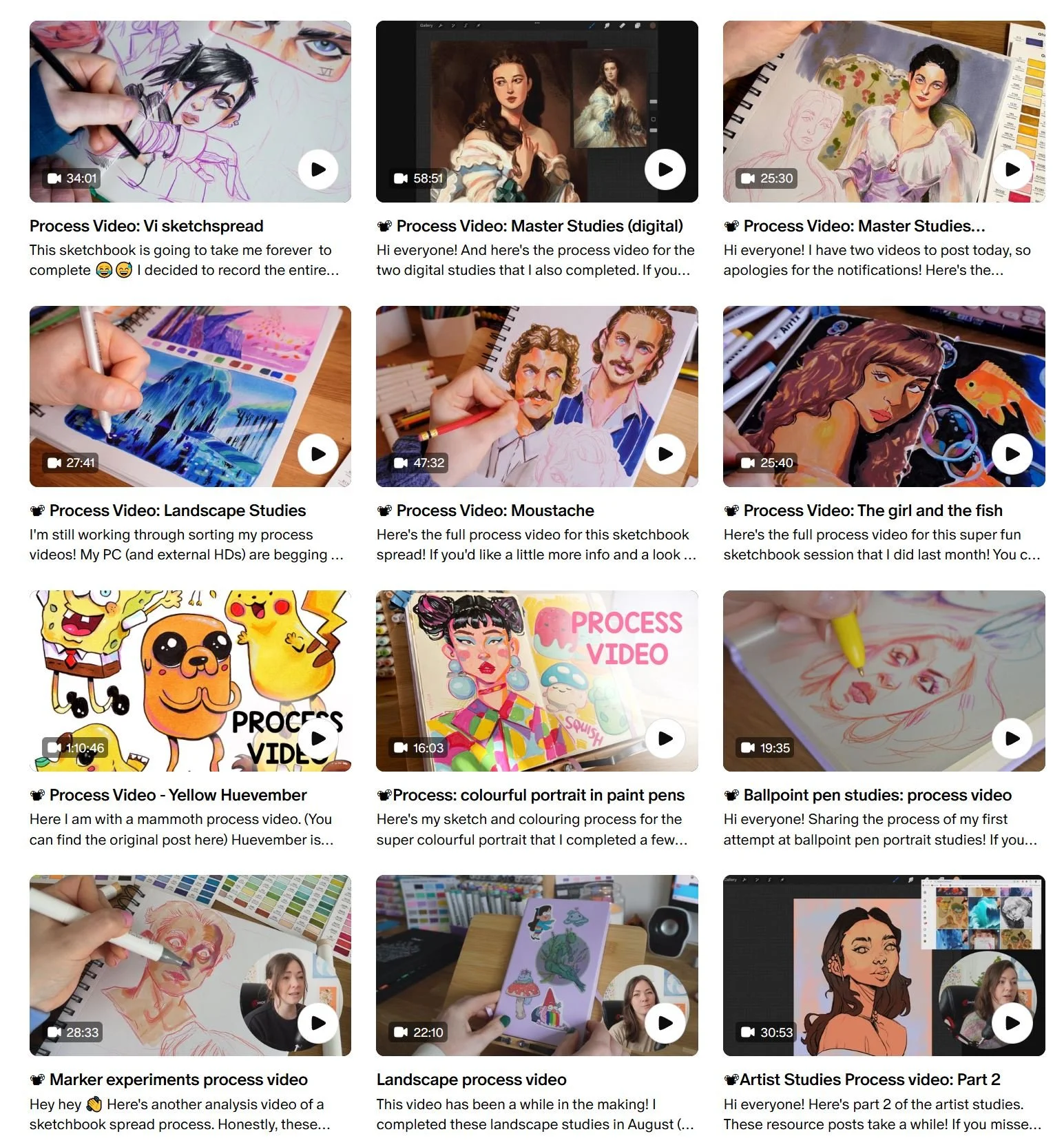 From the basics of how to use markers, or broader topics as to my style and “how I do” things; there’s plenty of video footage! My full process videos will give you all-access to my creative techniques!